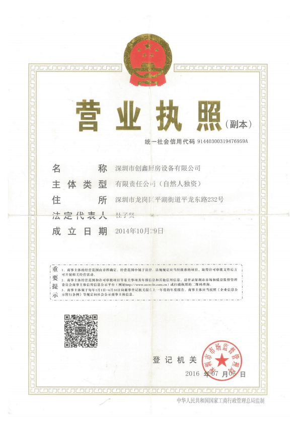 深圳市創鑫廚房設備有限公司